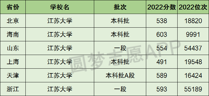 下面圆梦志愿将为大家展示江苏大学2022年在全国各省市的最低分数线和位次,大家可以在了解江苏大学在全国各省详细招生批次的同时,也顺便看看江苏大学的招生录取分数线是多少!