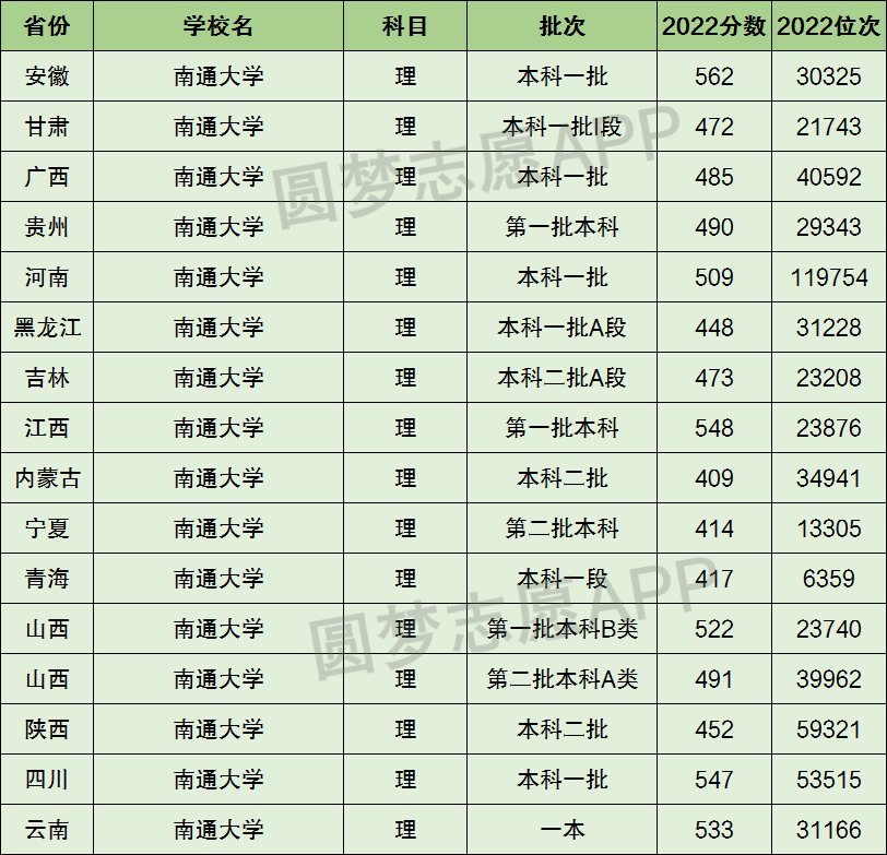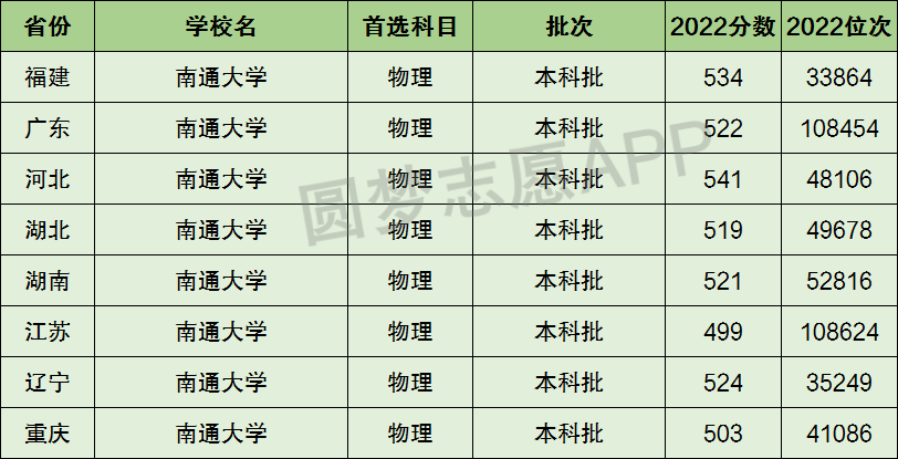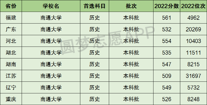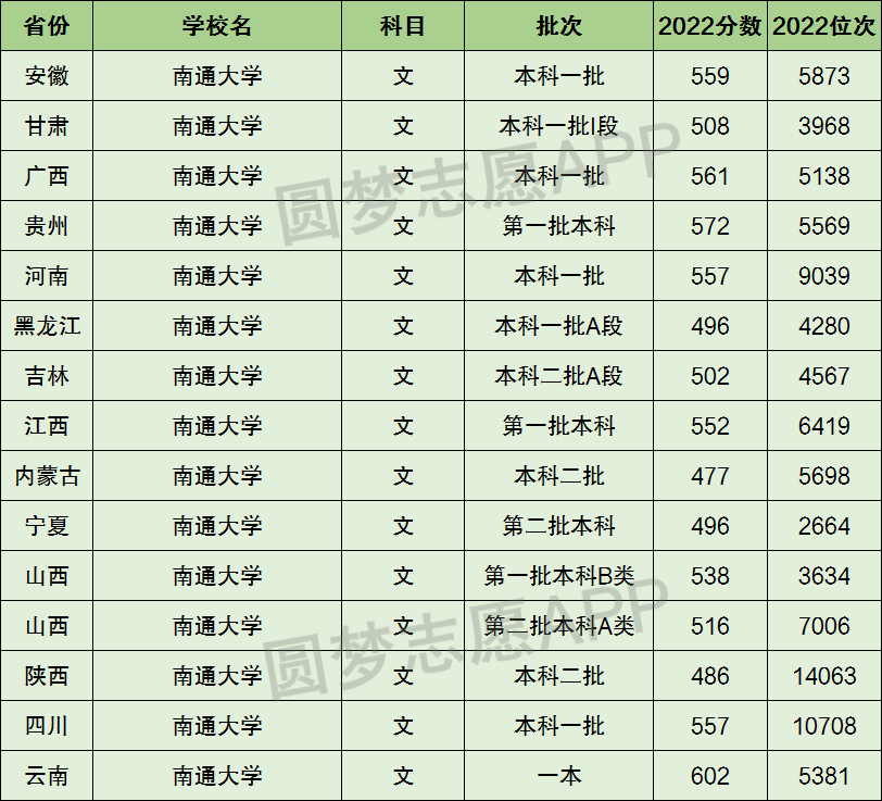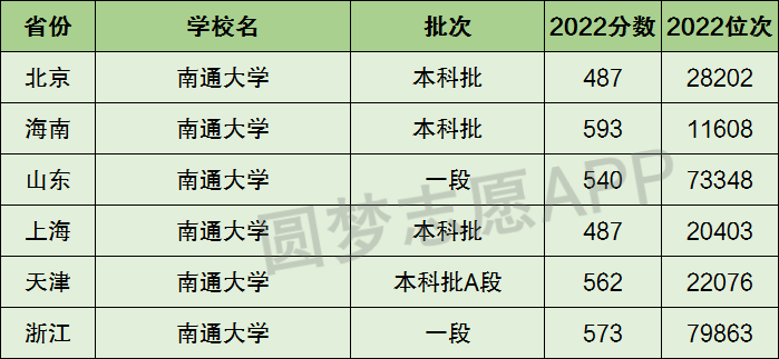 下面圆梦志愿将为大家展示南通大学2022年在全国各省市的最低分数线和位次,大家可以在了解南通大学在全国各省详细招生批次的同时,也顺便看看南通大学的招生录取分数线是多少!