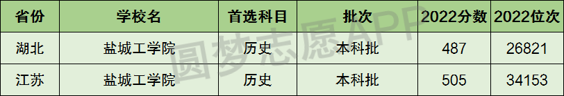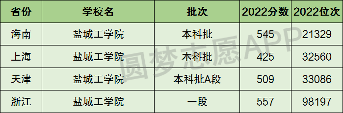 下面圆梦志愿将为大家展示盐城工学院2022年在全国各省市的最低分数线和位次,大家可以在了解盐城工学院在全国各省详细招生批次的同时,也顺便看看盐城工学院的招生录取分数线是多少!