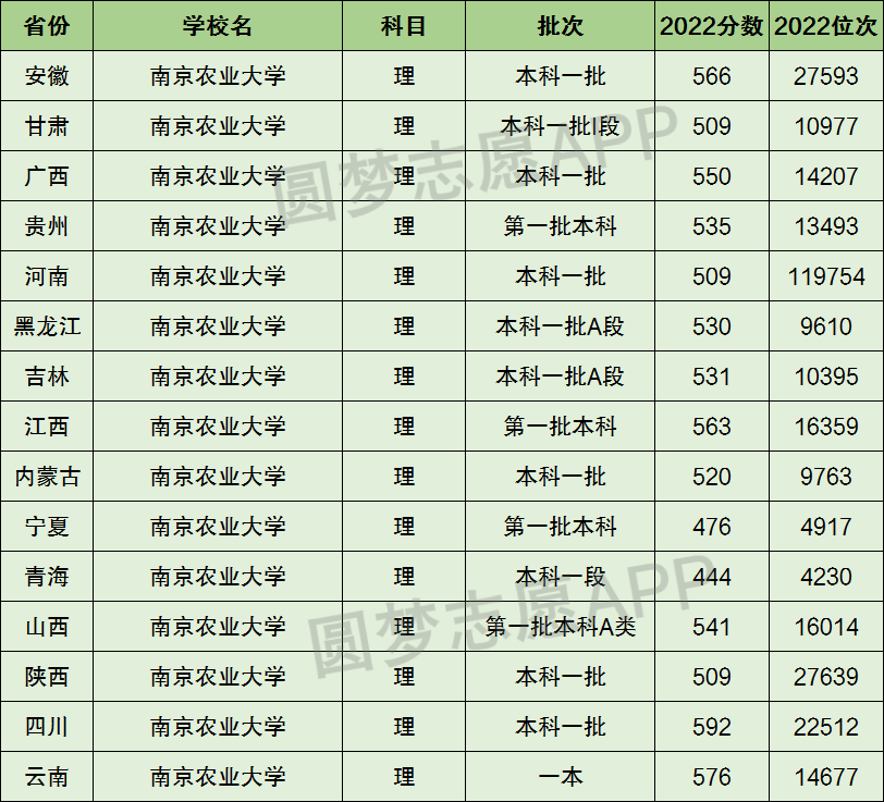 下面圆梦志愿将为大家展示南京农业大学2022年在全国各省市的最低分数线和位次,大家可以在了解南京农业大学在全国各省详细招生批次的同时,也顺便看看南京农业大学的招生录取分数线是多少!