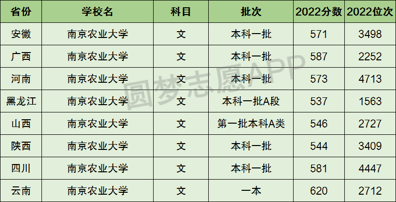 1、南京农业大学在全国普通高考省份的【文科】招录数据,包含招生批次等信息: