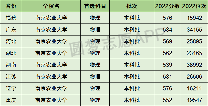 5、南京农业大学在3+1+2新高考省份【首选物理】的招录数据,招生批次为本科批: