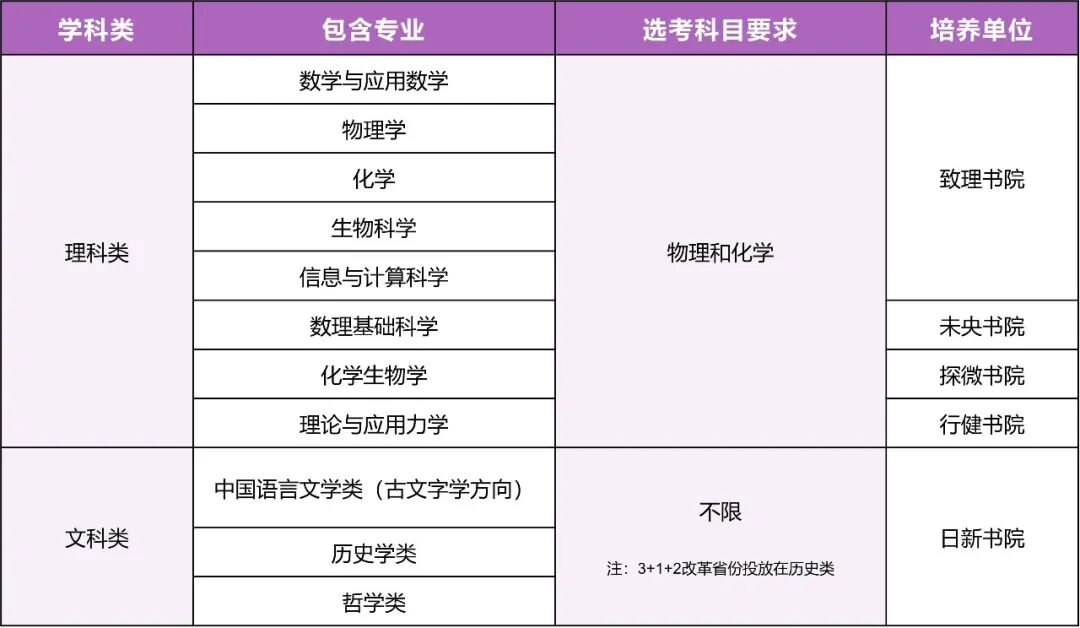 基础理科工程衔接类专业:数理基础科学、化学生物学、理论与应用力学