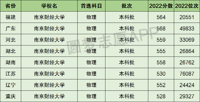 5、南京财经大学在3+1+2新高考省份【首选物理】的招录数据,招生批次为本科批: