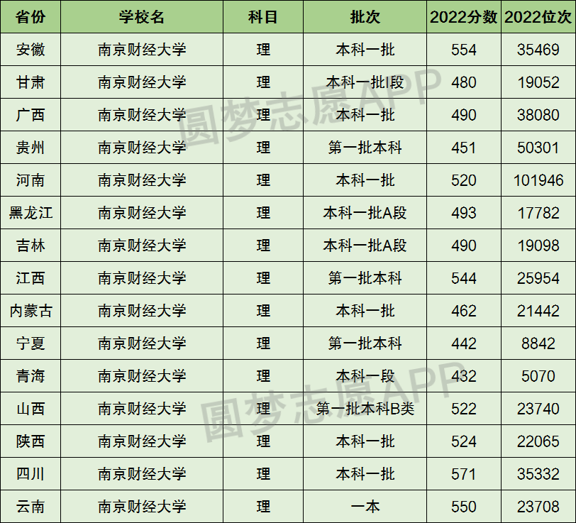 2、南京财经大学在全国普通高考省份的【理科】招录数据,包含招生批次等信息: