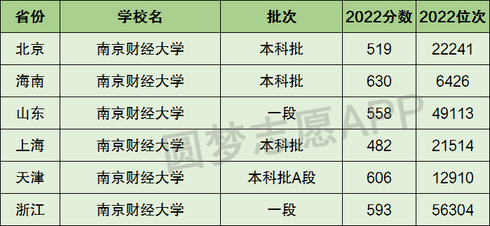 1、南京财经大学在全国普通高考省份的【文科】招录数据,包含招生批次等信息: