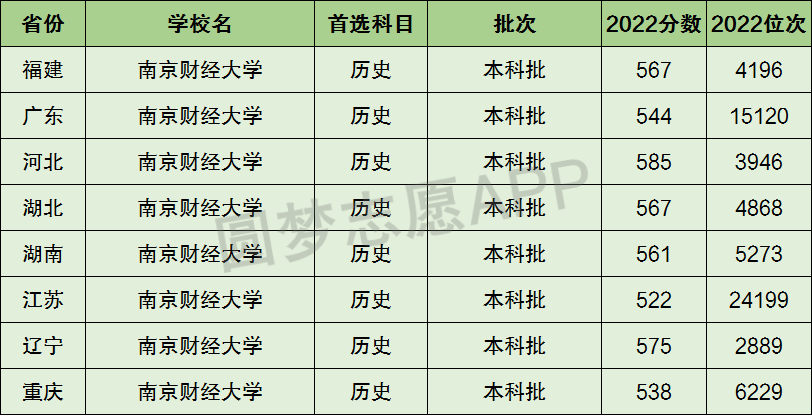 4、南京财经大学在3+1+2新高考省份【首选历史】的招录数据,招生批次为本科批: