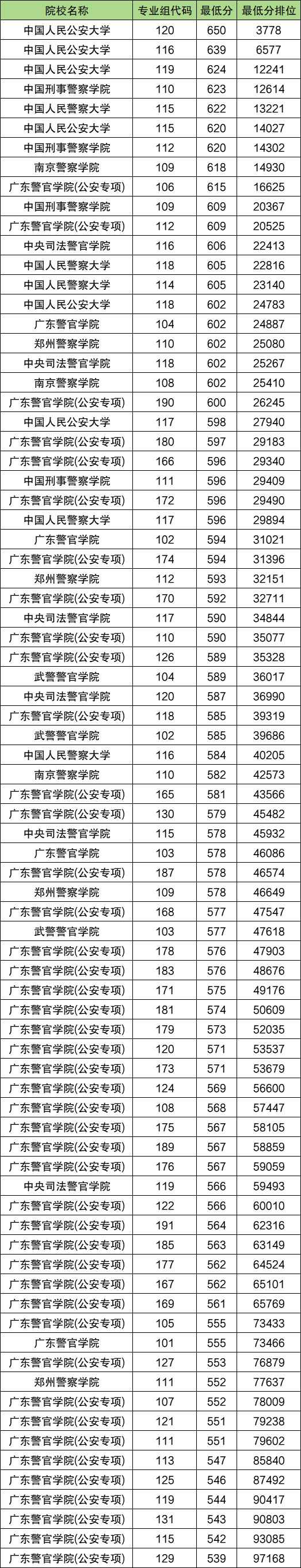 特控线以上分数线最低的警校是广东警官学院(公安专项)129组,2025年最低分是539分,超特控线5分能上。