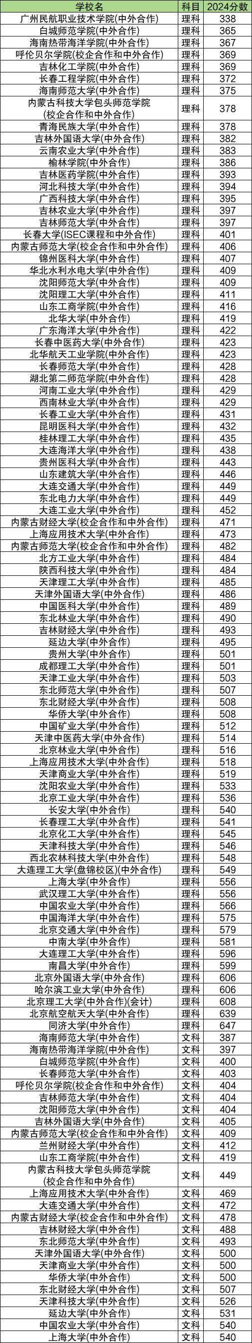 二.中外合作大学录取分数线2024