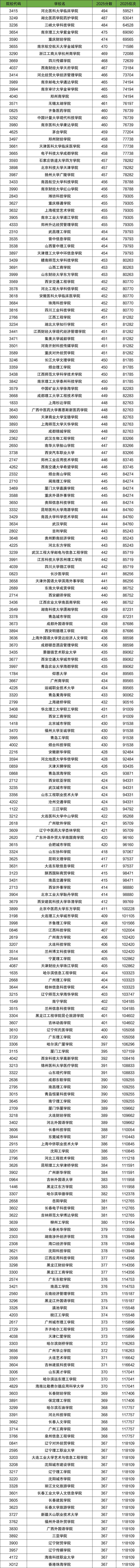 历史类分数线最高、最难考的是河北医科大学临床学院(代号3415),2025年最低分495,最低位次15727名。其次是石家庄铁道大学四方学院(代号3593),2025年最低分493,对应最低位次16120名。