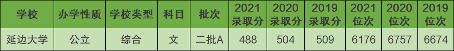 二、从延边大学近三年在吉林省本科二批的录取分数线来看: