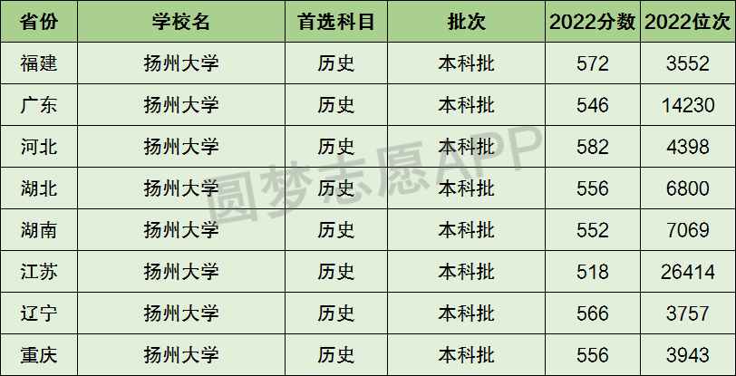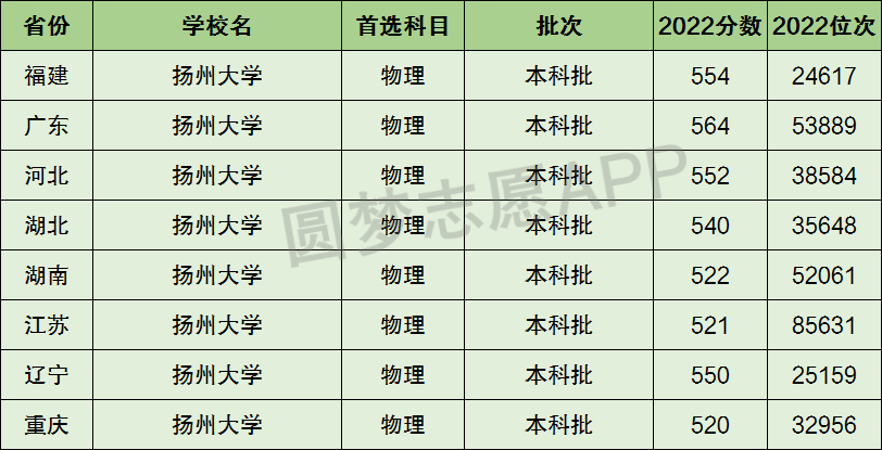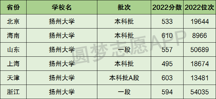 下面圆梦志愿将为大家展示扬州大学2022年在全国各省市的最低分数线和位次,大家可以在了解扬州大学在全国各省详细招生批次的同时,也顺便看看扬州大学的招生录取分数线是多少!