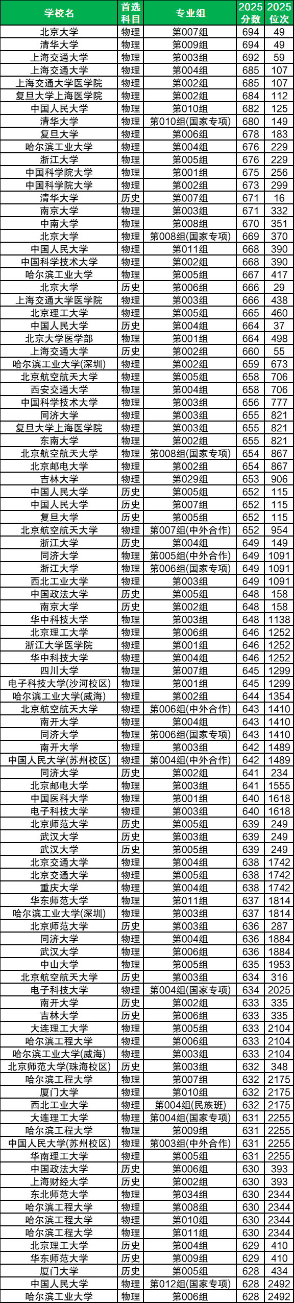 下面附上全国大学2025年在吉林录取分数线Top100一览表,分数表较长,需滑动查阅: