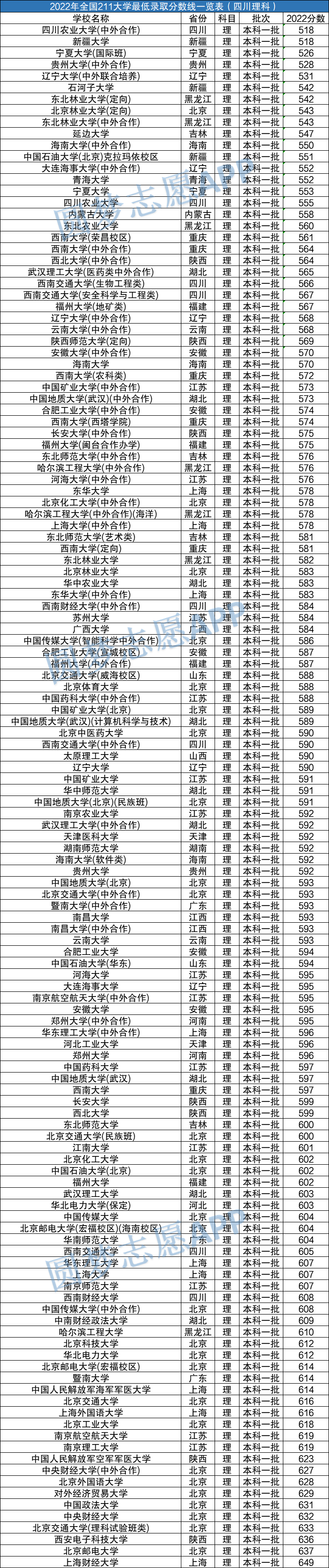 可以看到,211大学在四川省理科考生的最低录取分数线在518-649分之间。