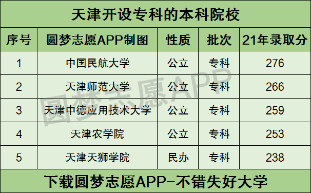 根据天津高考2021年高职专科批次的招生录取数据,小编为大家整理出了:天津市内招专科专业的公办本科大学名单,共计4所,具体如下。