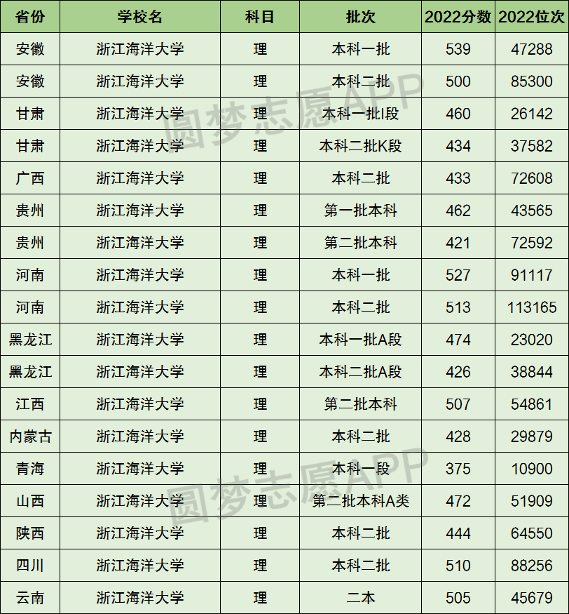 2、浙江海洋大学在全国普通高考省份的【理科】招录数据,包含招生批次等信息: