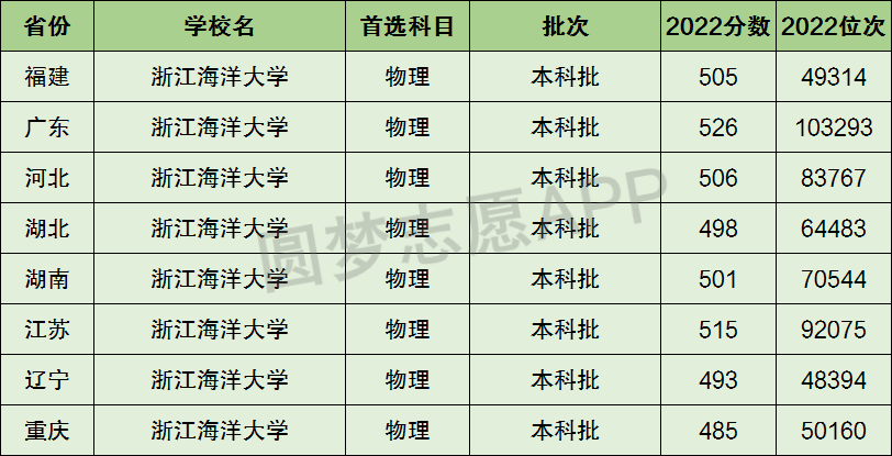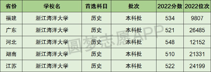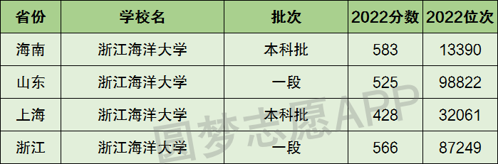 下面圆梦志愿将为大家展示浙江海洋大学2022年在全国各省市的最低分数线和位次,大家可以在了解浙江海洋大学在全国各省详细招生批次的同时,也顺便看看浙江海洋大学的招生录取分数线是多少!