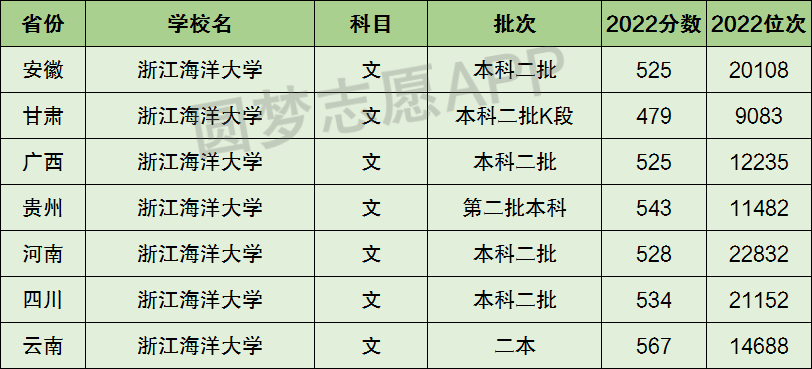 1、浙江海洋大学在全国普通高考省份的【文科】招录数据,包含招生批次等信息: