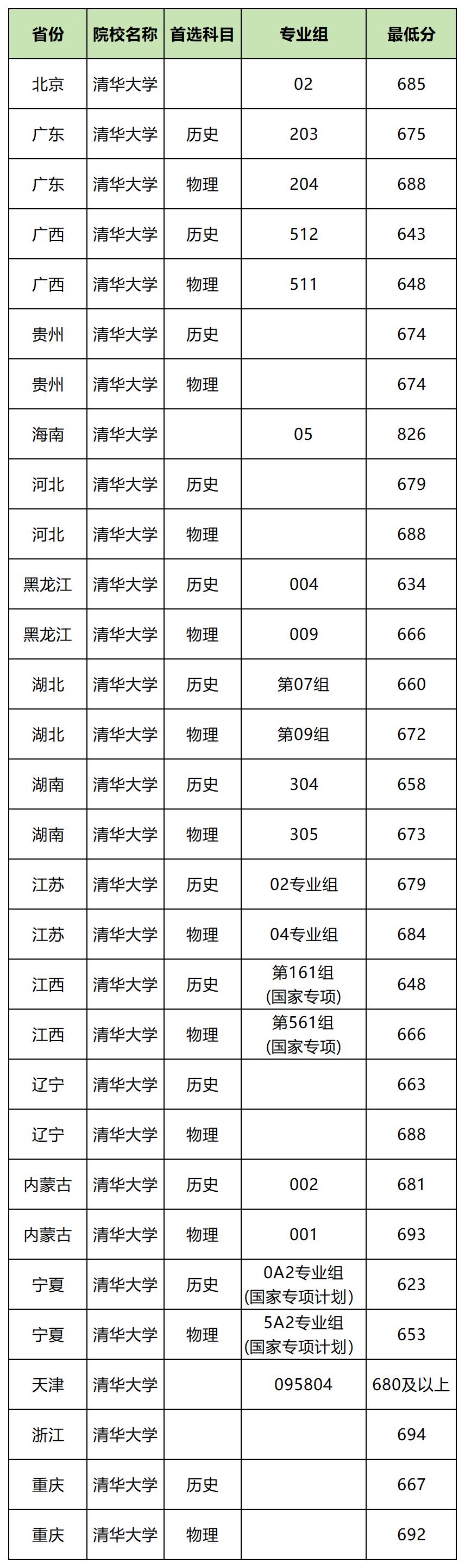 2025年清华大学在贵州招生最低分为674分(历史类和物理类);