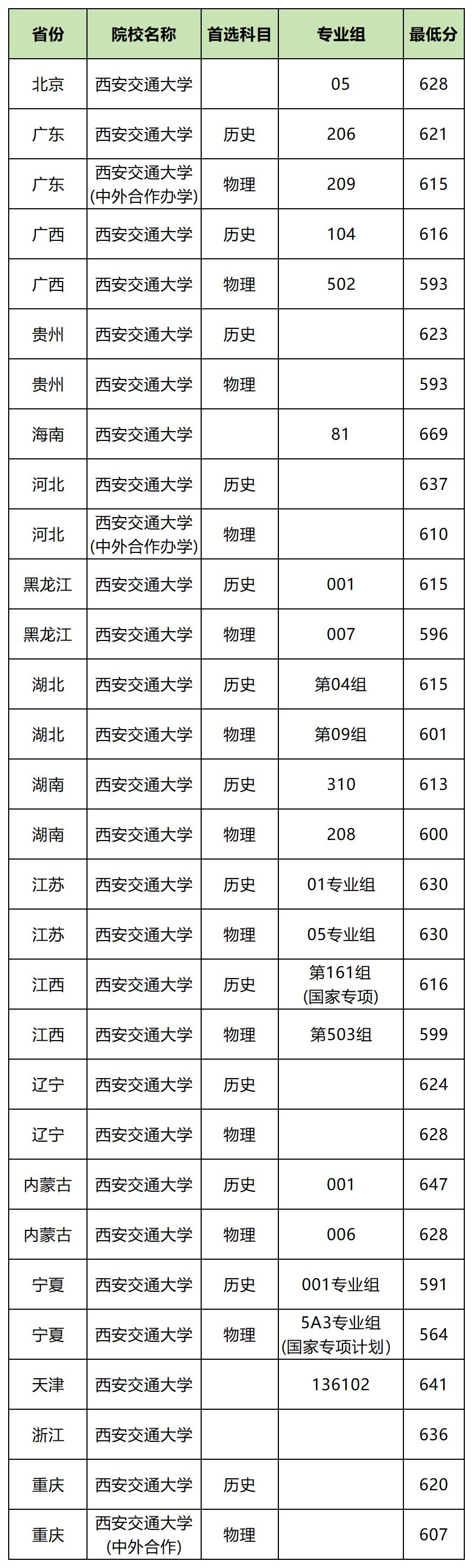 2025年西安交通大学在贵州招生最低分为593分(物理类);
