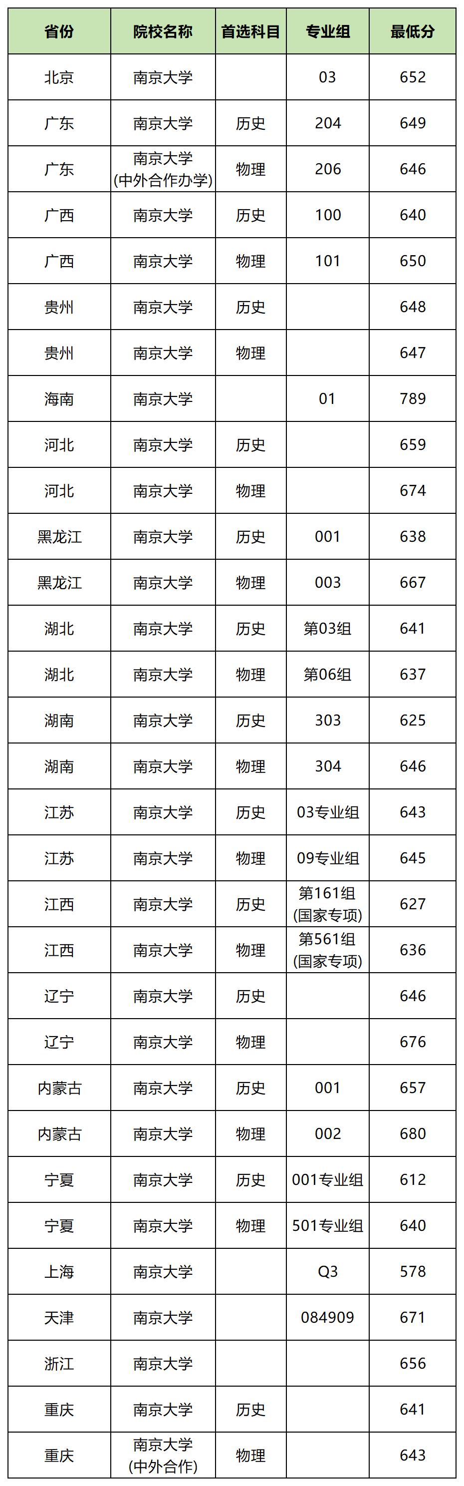 2025年南京大学在北京招生最低分为652分(综合改革);
