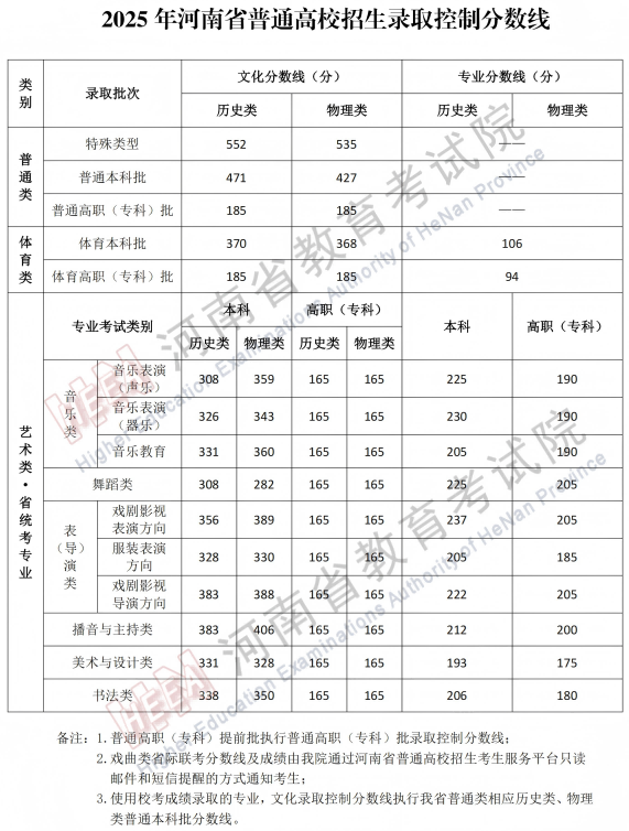 在2025年河南物理类的分数线中,本科线是427分,特控线是535分,专科线是185分;在河南历史类的分数线中,本科线是471分,特控线是552分,专科线是185分。