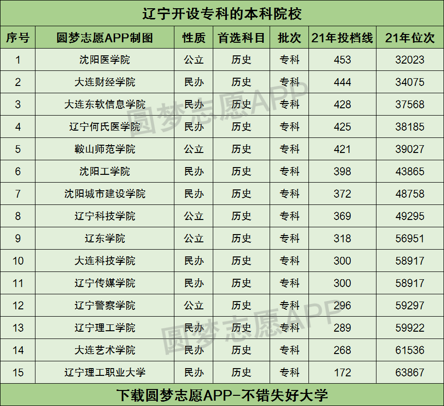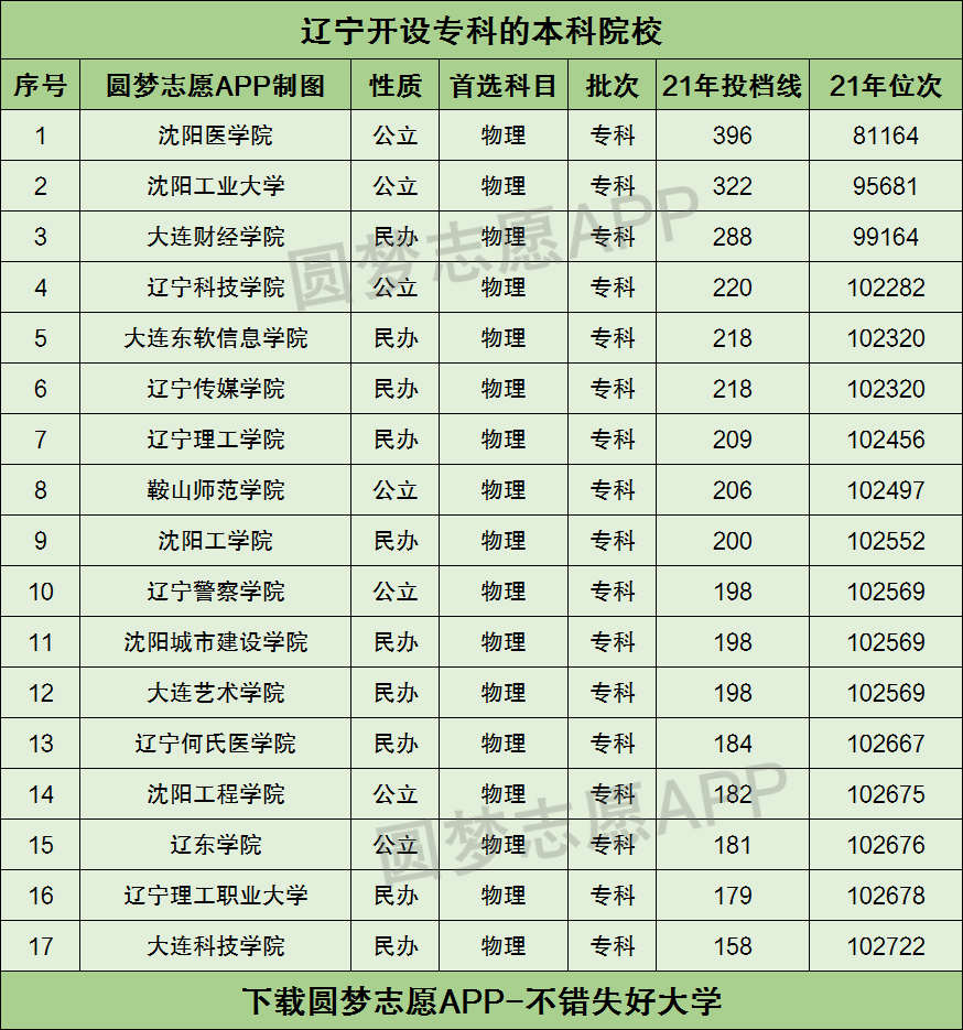 一、辽宁开设专科的本科院校有哪些?