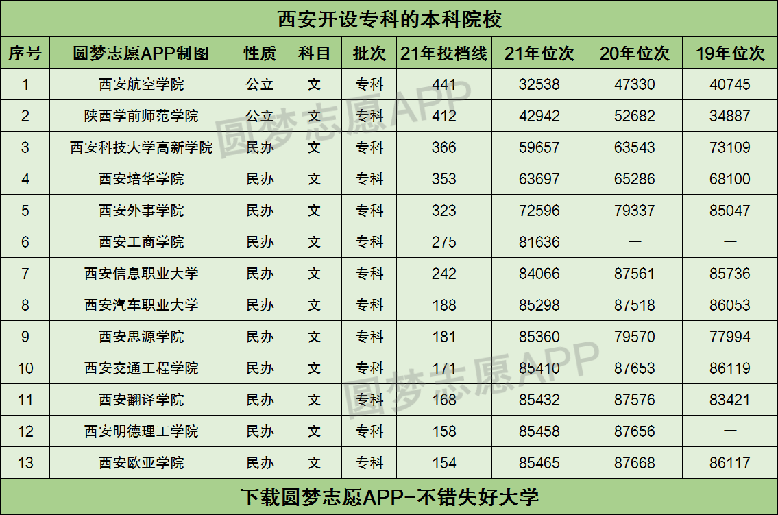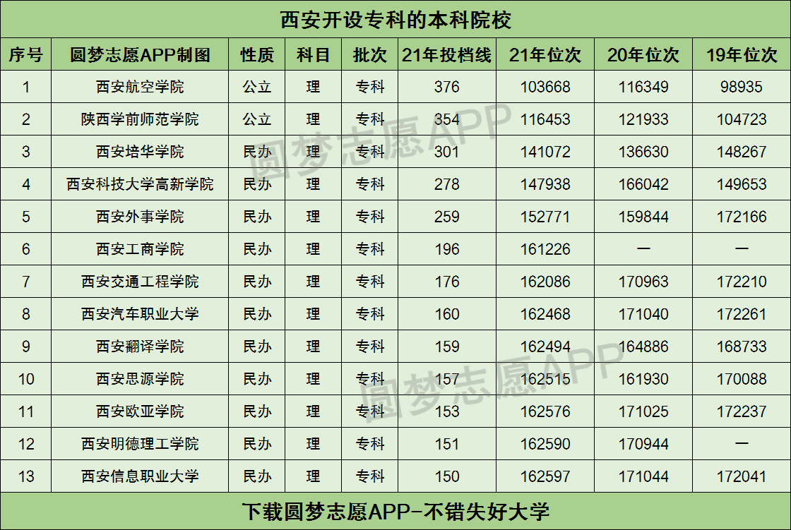 以上这2所公办本科大学中的专科专业,在全国所有在西安市招生的专科专业中实力领先,值得陕西省内在本科线下的高三同学在择校时优先考虑。