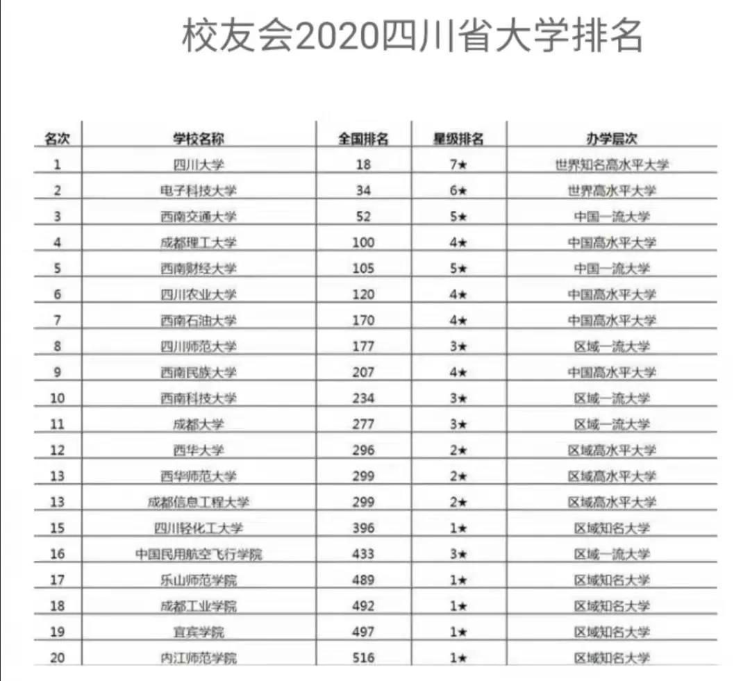 下面图片,是2020年校友会四川省高校排名情况,可以清楚看到成都大学已经是全省排名第11名: