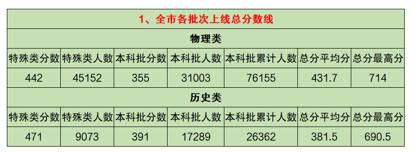 历史类:总分最高分690.5分,总分平均分381.5分,本科批累计人数26362;