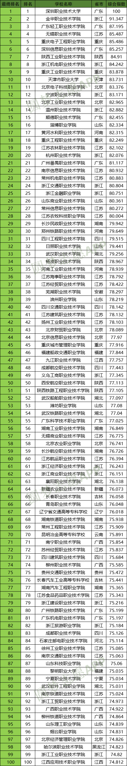 注:以上排名来自GDI高职2023年全国大学最新排行榜。