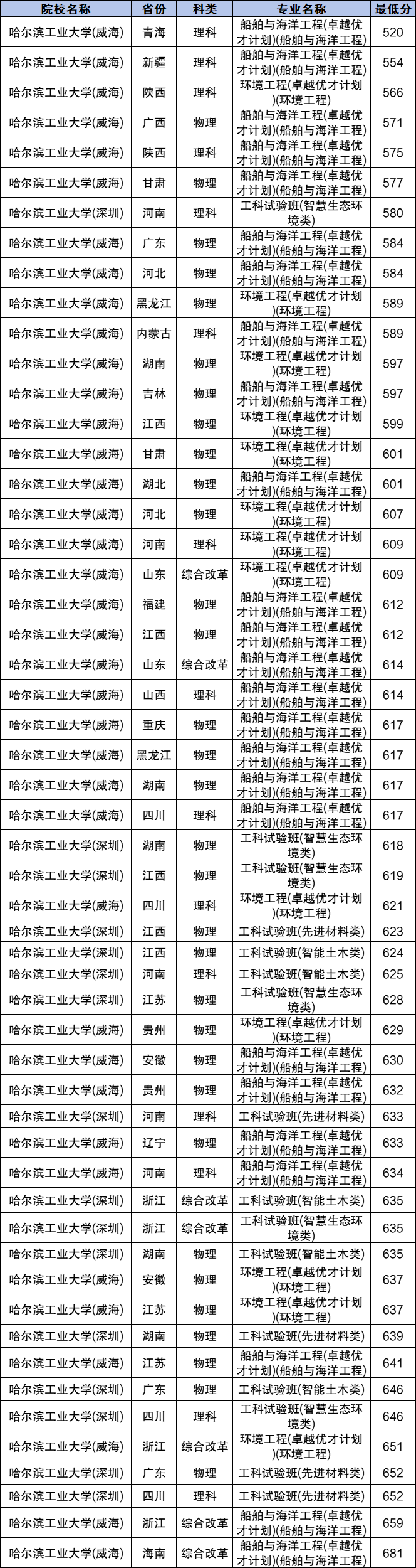 注:本文分数线汇总了威海校区、深圳校区招录数据。