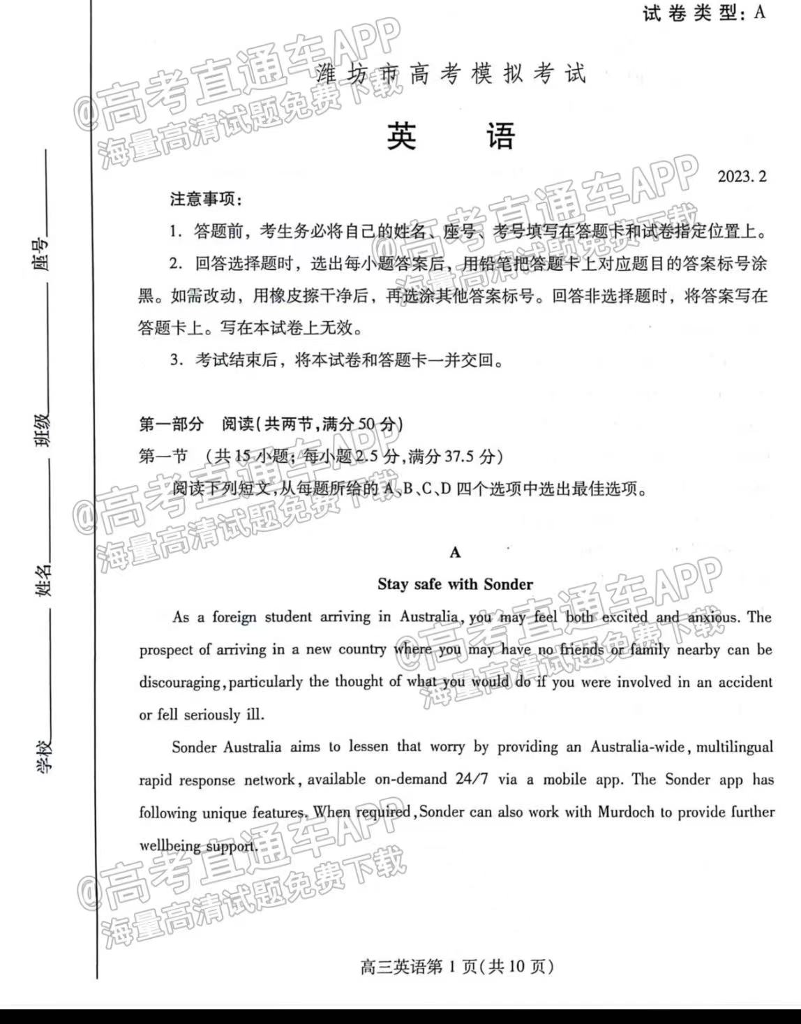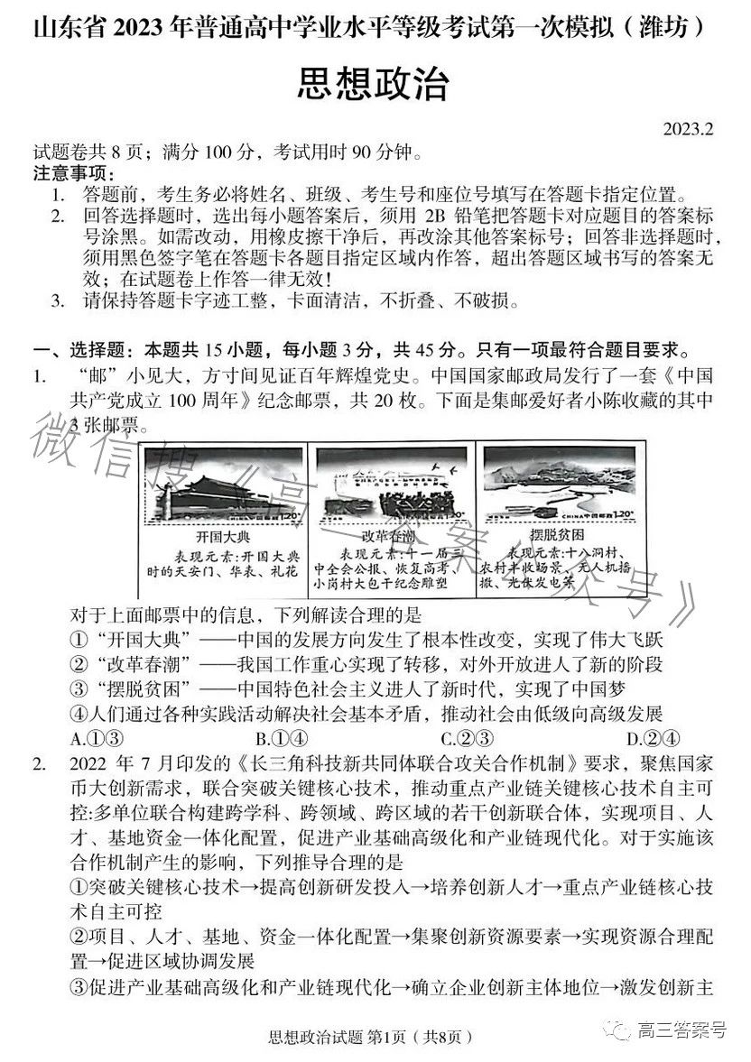 2023年潍坊一模与东营联考于2月20日开考,所有科目试卷及答案将在考后更新。潍坊一模2023高三2月联考主要会考到的科目有语文、数学、英语、政治、历史、地理、生物、物理、化学等九门学科,请大家持续关注本文或高考100网站,小编将在试卷及答案公布后,尽快更新。