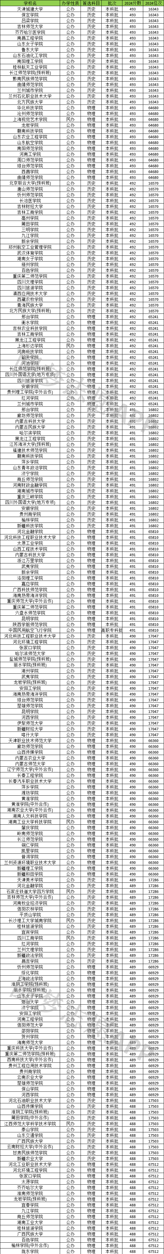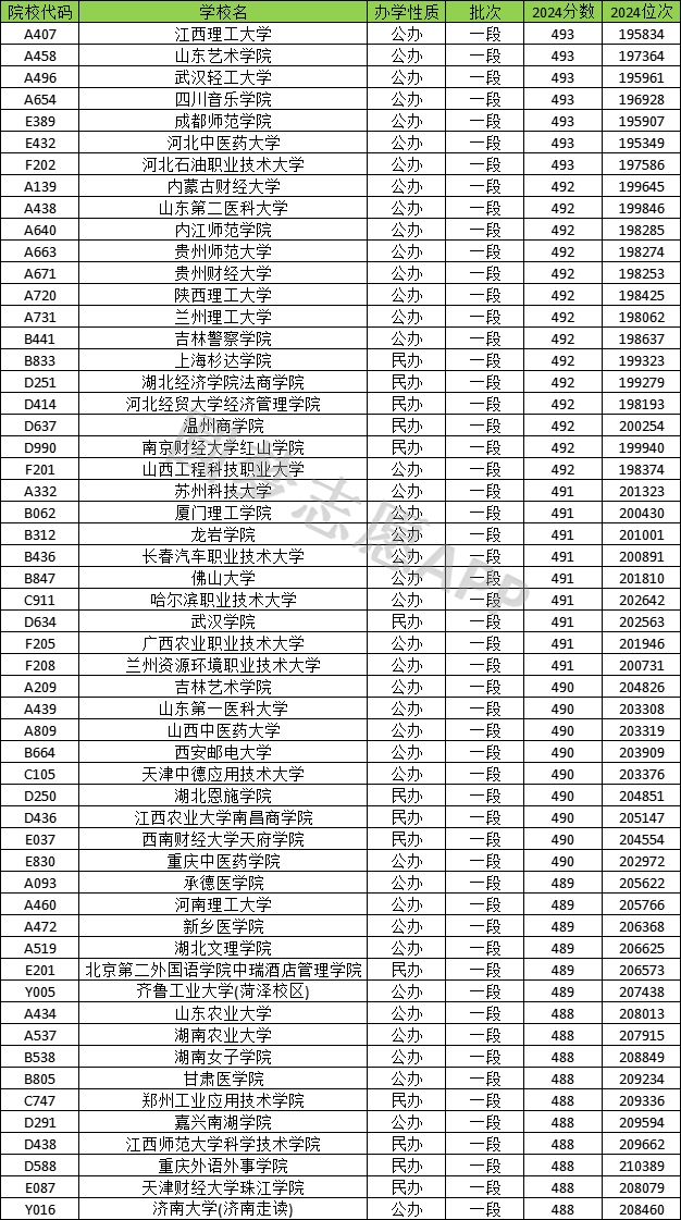 从上文山东省490分左右(488分-493分之间)录取的大学来看,能上的公办大学有:
