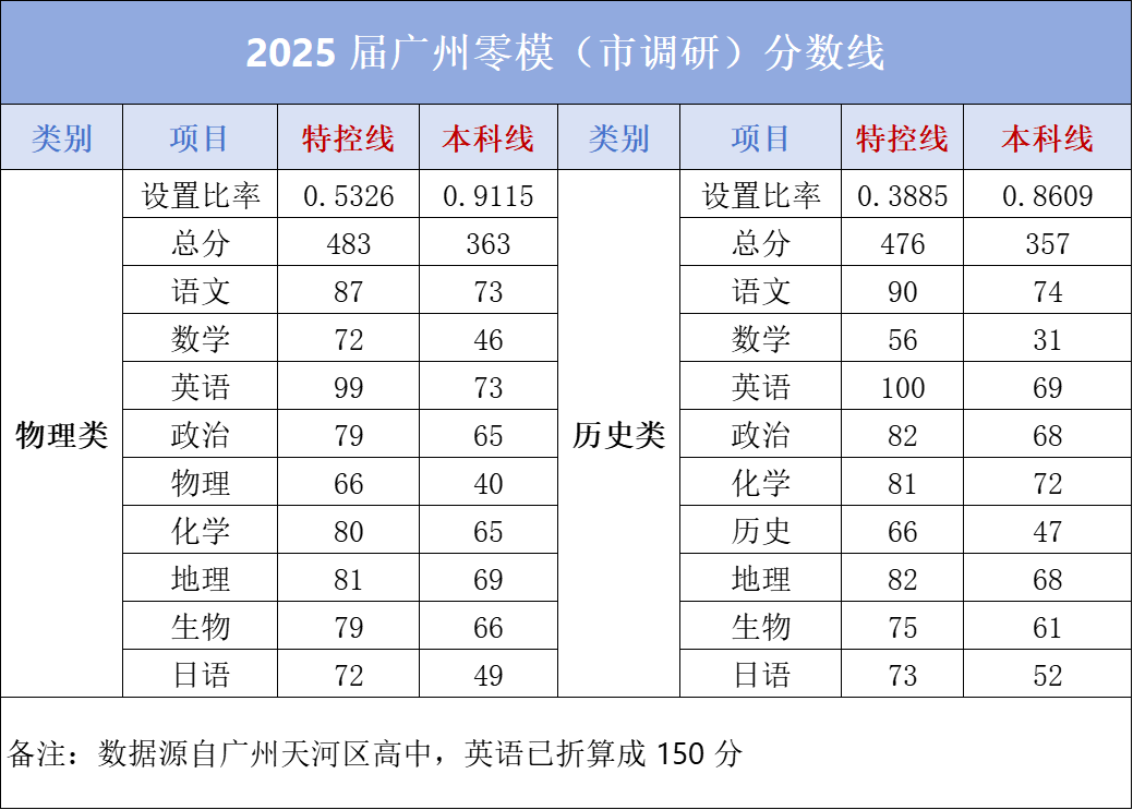 回顾2025年广州零模考试,其分数线如下:
