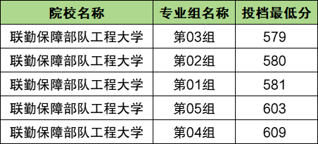 | 198801 | 联勤保障部队工程大学 | 618 |