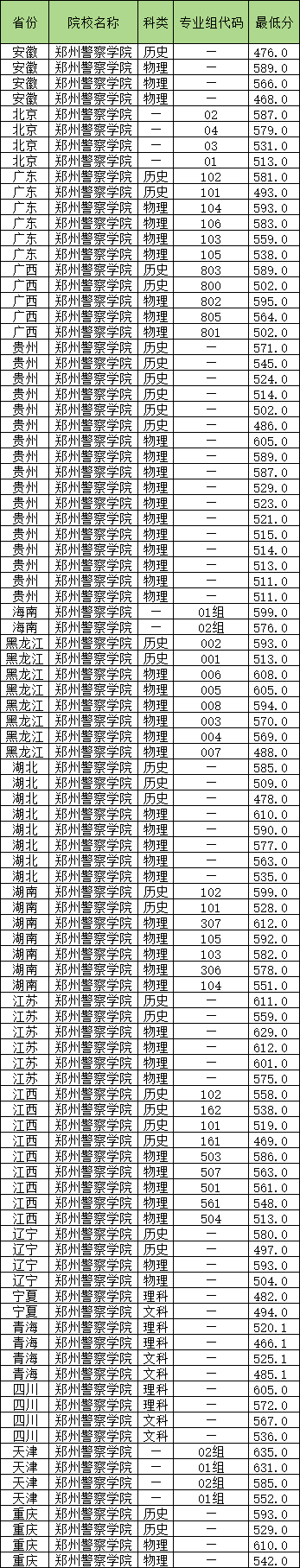 | 郑州警察学院 | 历史 | 01专业组 | 569 |