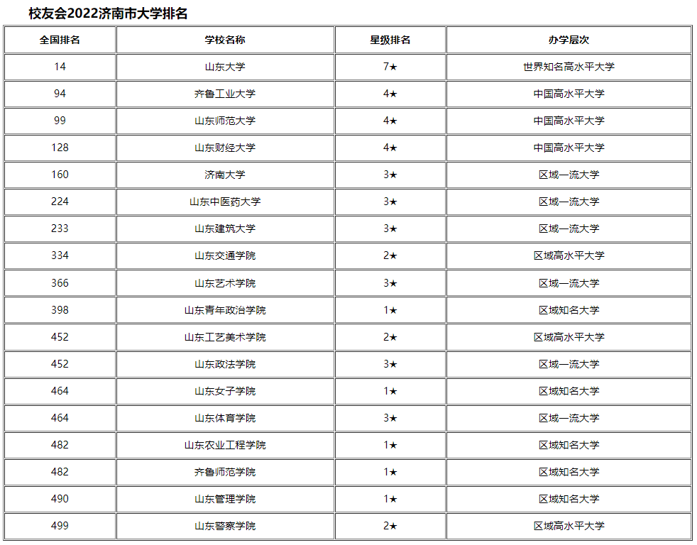 10、山东青年政治学院——全国第398名,以下为2022年校友会济南市本科大学全部排名。