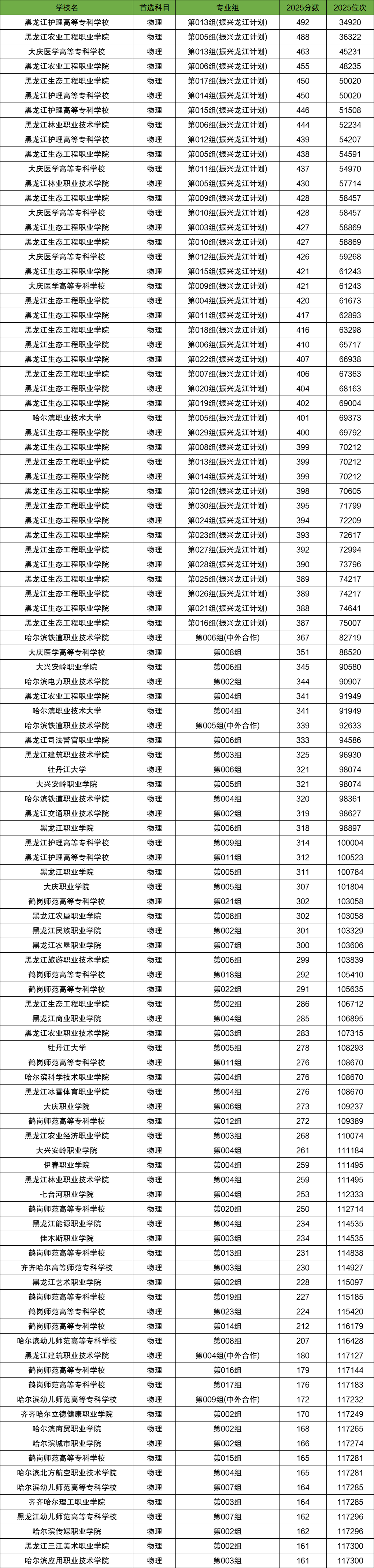 2025年黑龙江各专科大学录取分数线最低是161分、最高是492分。