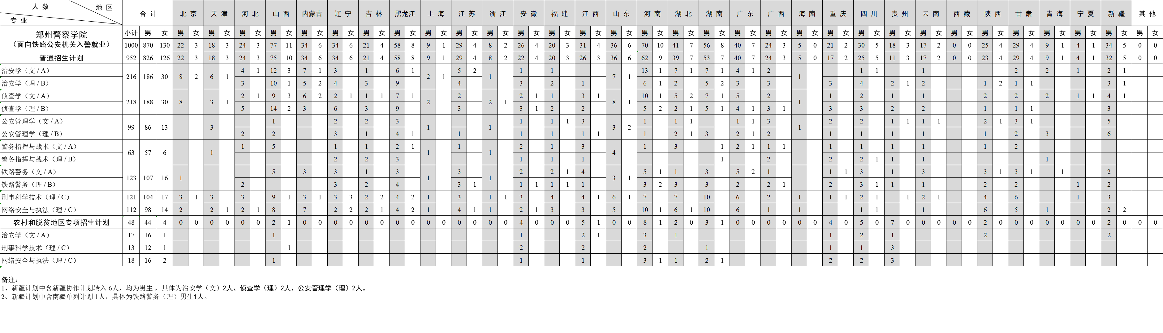 根据教育招生考试院、公安厅政治部文件,学校招生计划预分到全国31省,包括河北、辽宁、吉林、黑龙江、江苏、安徽、福建、江西、湖北、湖南、广东、广西、重庆、贵州、甘肃等,各省招生计划人数如下表: