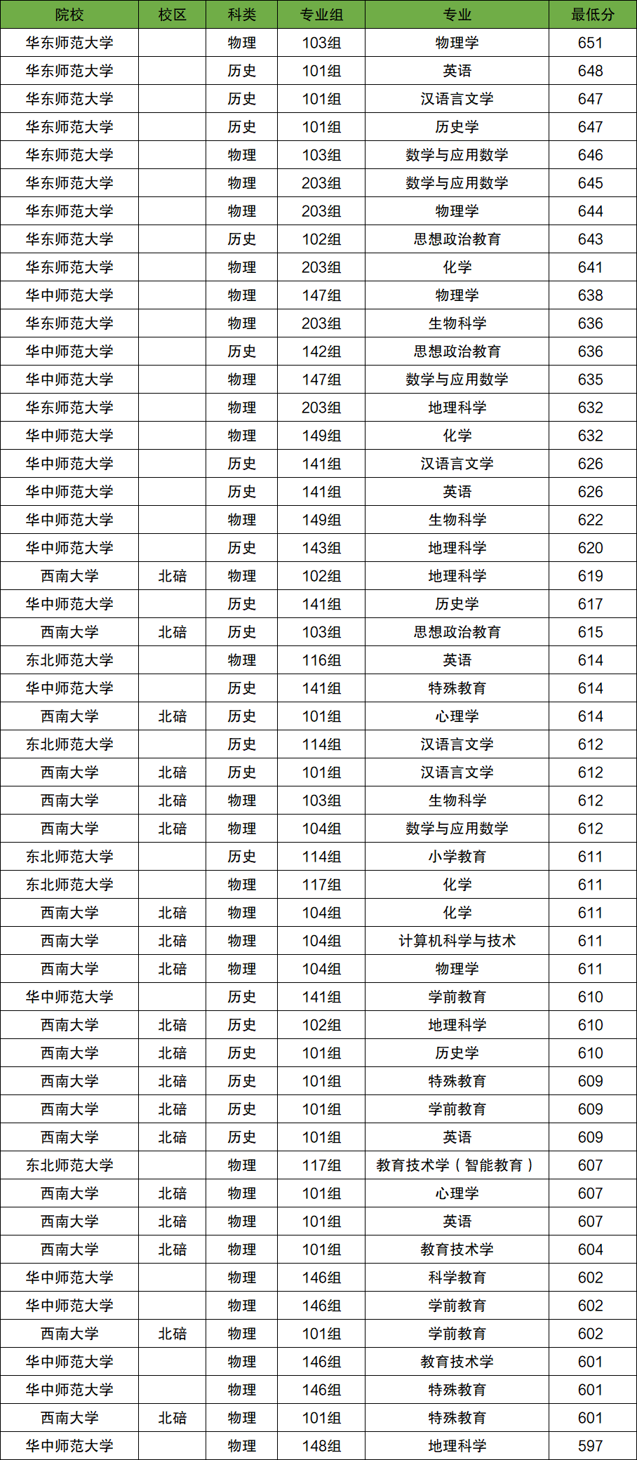 陕西公费师范生院校中历史类录取分数线最高的是华东师范大学(英语),2025年的最低录取分数线为648分;