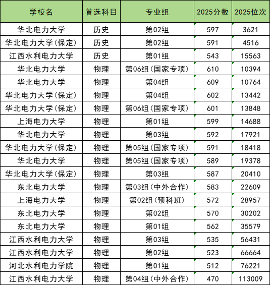 电力大学在各个地区的招生分数线具有差异,小编这里整理了部分地区2025年全国电力大学的分数线供大家参考。另外大家也可以通过圆梦志愿APP查看相关数据和学校基本信息等内容。