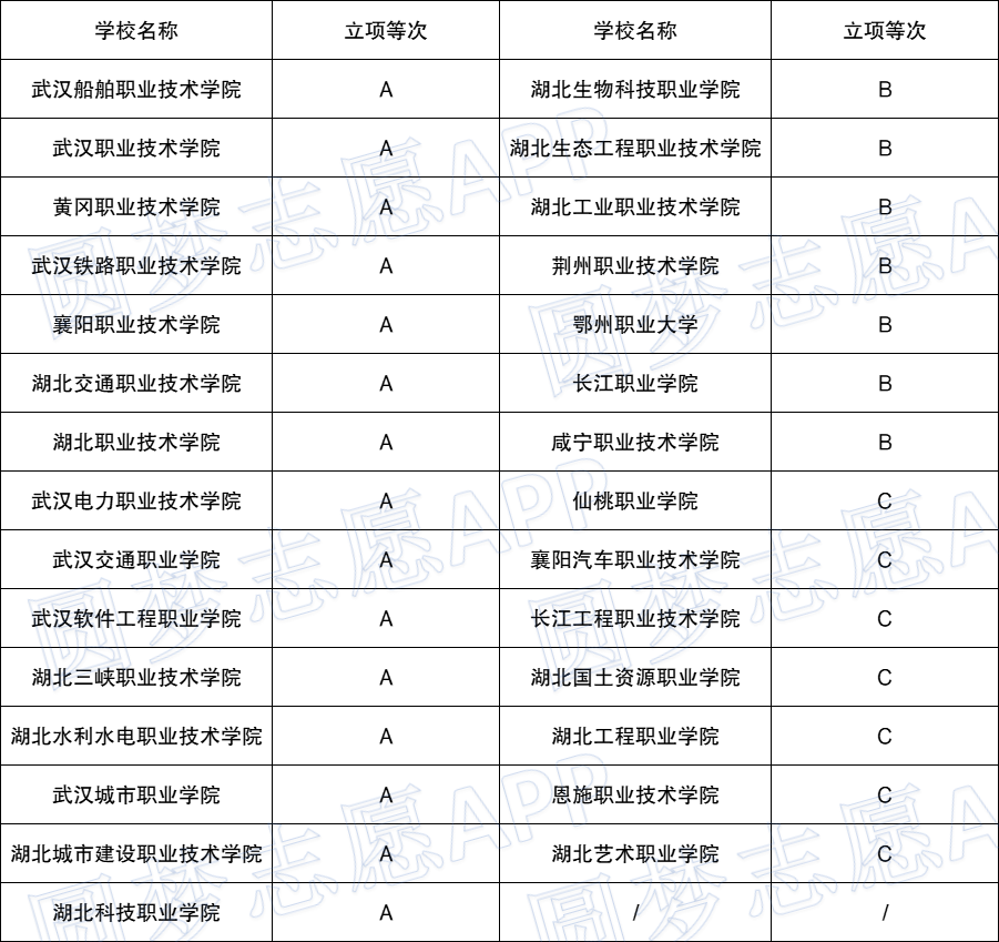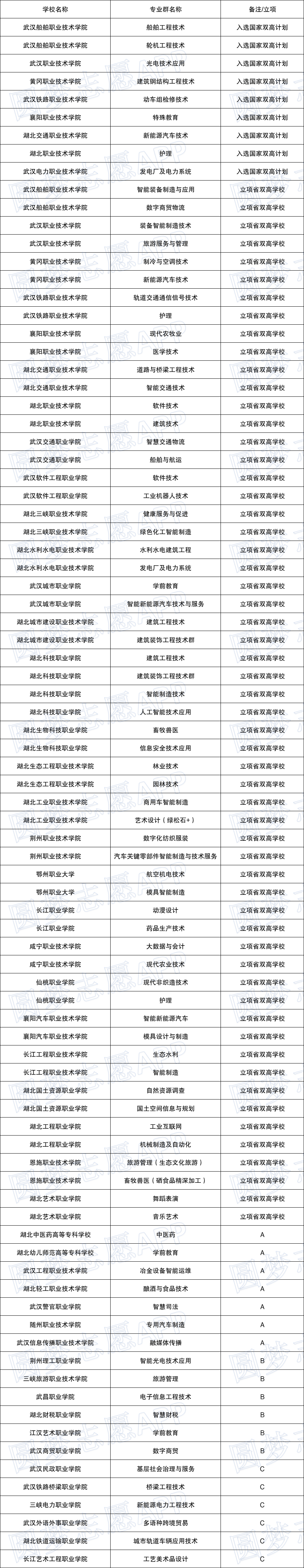 如上图所示,就是湖北省内最好的高职高专院校,另外在这些院校中,武汉船舶职业技术学院、武汉职业技术学院、黄冈职业技术学院、武汉铁路职业技术学院、襄阳职业技术学院、湖北交通职业技术学院、湖北职业技术学院、湖北电力职业技术学院这8所高职高专院校也是入选国家双高计划的学校。