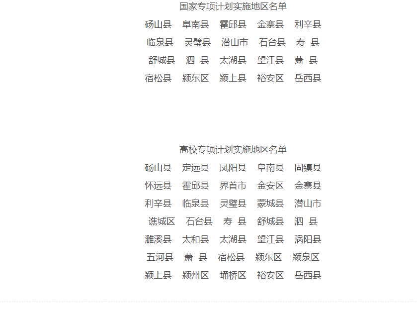 三、安徽省专项计划实施区域