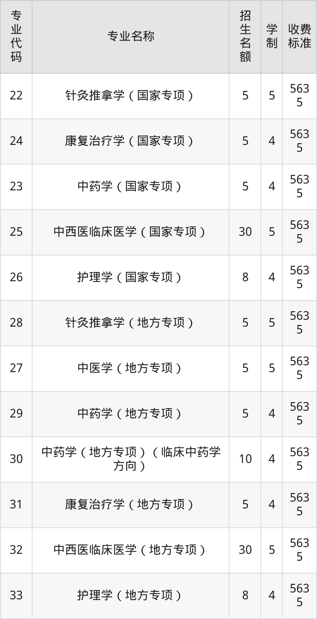 | 13 | 针灸推拿学(地方专项) | 5 | 5 | 5635 |