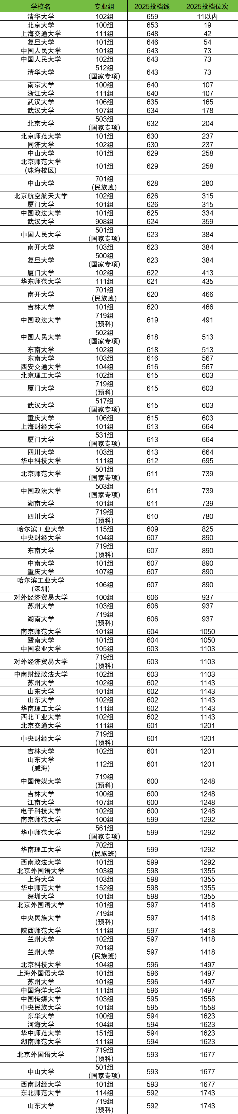 下面是2025年各大学在广西历史类录取分数线排名前100强名单: