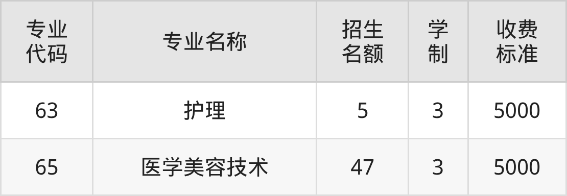 | 65 | 医学美容技术 | 100 | 3 | 5000 |
