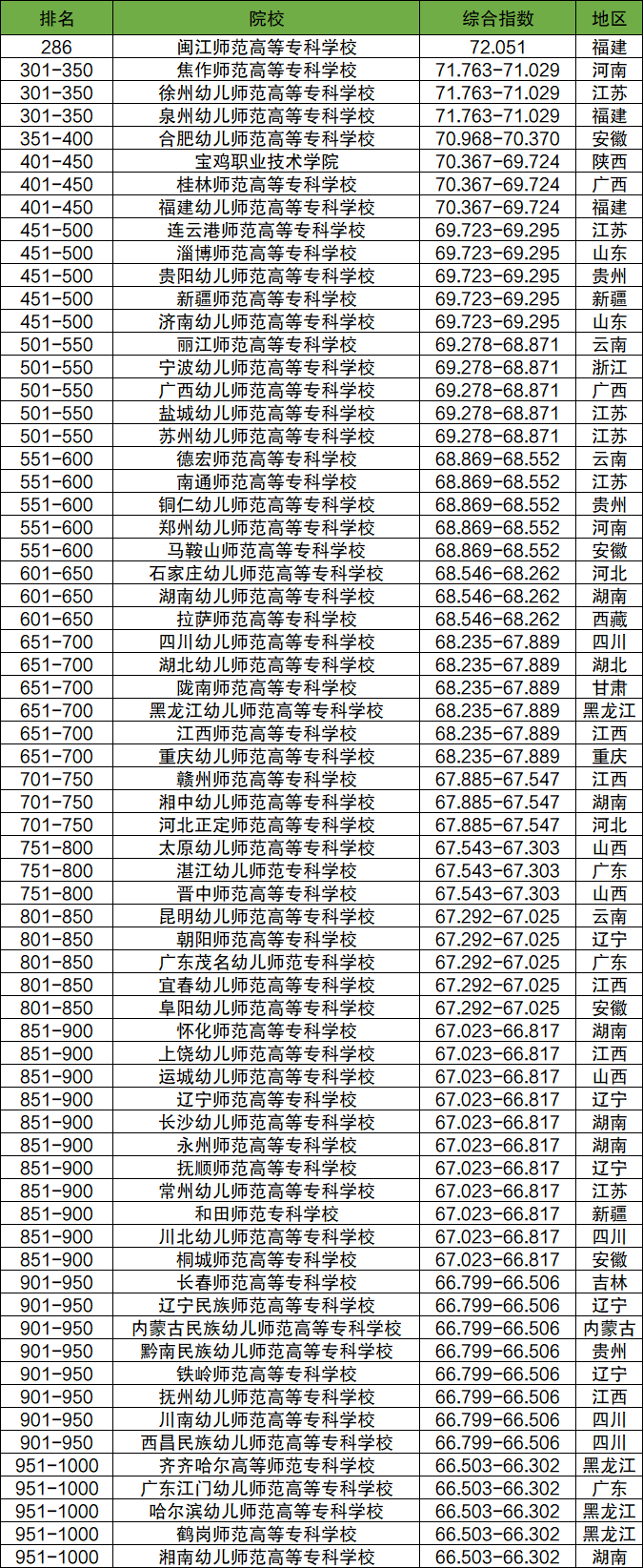 第一名:闽江师范高等专科学校(全国排名286名)