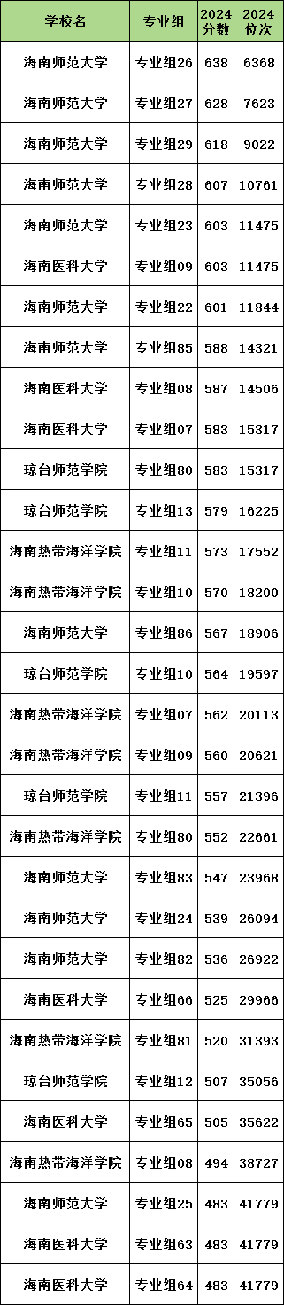 500分左右的公办二本:琼台师范学院12组、海南医科大学65组、海南热带海洋学院08组等。