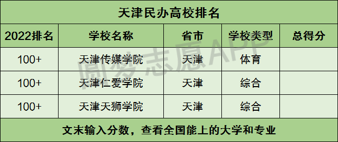 天津民办大学有天津传媒学院、天津仁爱学院、天津天狮学院等。根据软科2022民办高校排名,小编为大家整理出了天津市民办本科大学在全国高校中的排名。具体见下图: